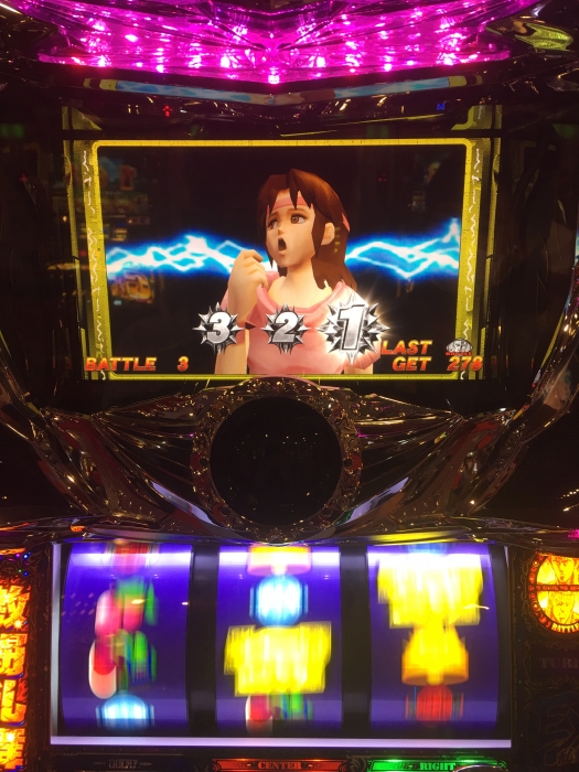 バトル中に中段チェリー引きました!! これは7の位置もばっちり!でしたが勝利確定でしたが 次は負けて終わりました。 ストックしないみたいですね…?(確率なのか?)