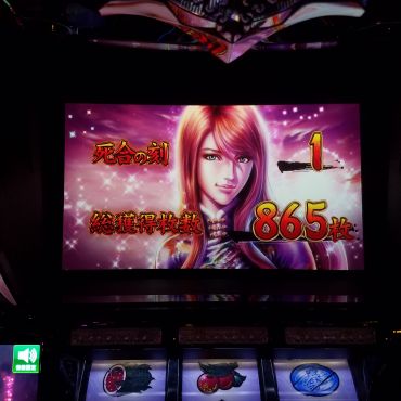 5万円目を追加した時点で今日はボロ負けだなと思いましたが、通常の死合で1000枚くらい出たあと、しばらく回していたら、宿命チェリーを引き、宿命ステージで弱スイカを引き、天授の儀へ。