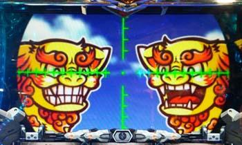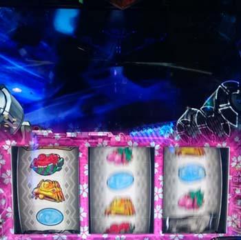 →枠下に7停止:中リール上端に注目。ベル非停止で小役が揃わなかったら武御雷BONUSを次ゲームに狙う