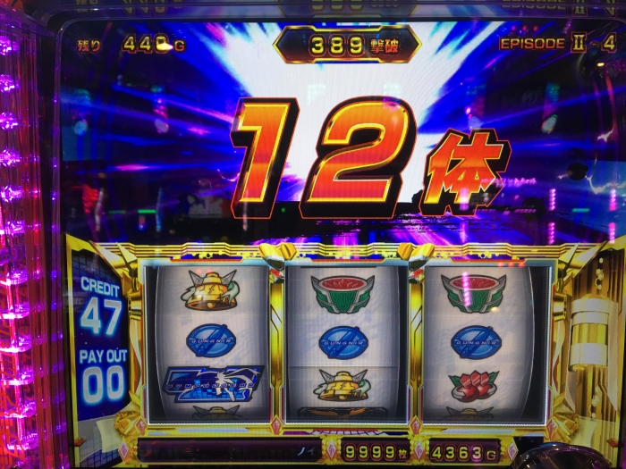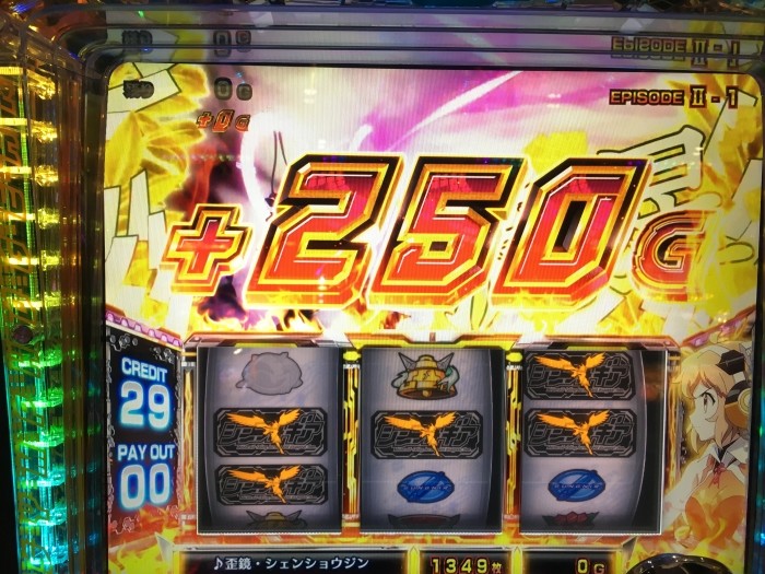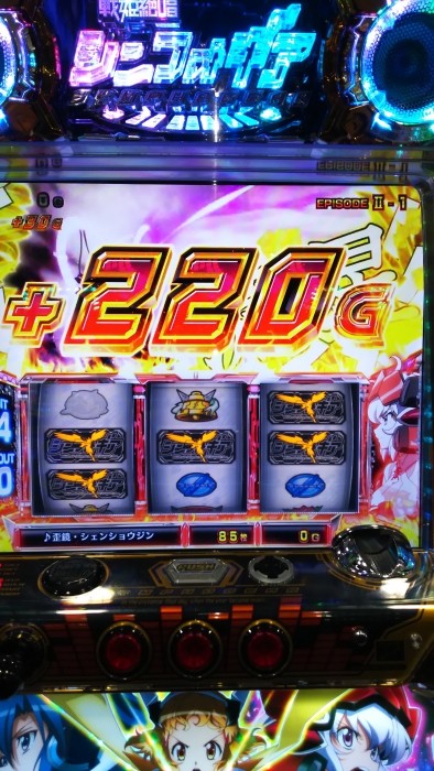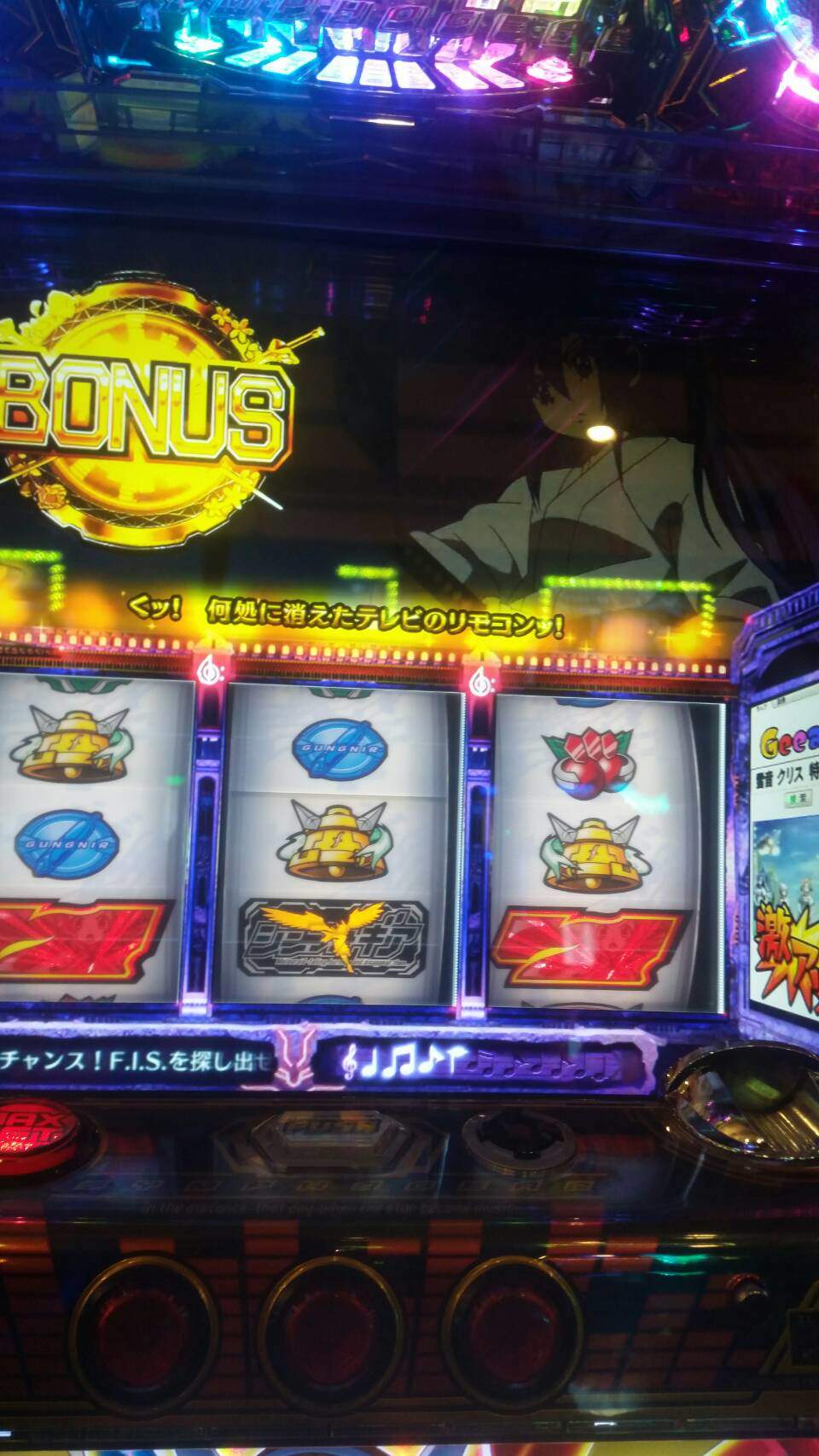 前日の設定が良さそうだったので打ってみたら1000枚くらい突っ込んだところで中段チェリーからのレアビッグ。直後にビッグひいてトータル5個くらいギアストックからの400G以上乗せ、引戻し等含め4400枚くらい出ました。