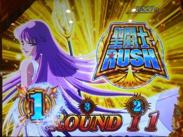「聖闘士RUSH」は純増2.8枚、1セット20G+α〜100G+α継続するセット継続タイプのAT。青銅聖闘士が海将軍とのバトルに勝利すれば継続確定。「黄金vs海将軍激闘」に突入すれば味方が黄金聖闘士となり、勝利する限りストック消費無しでRUSHが継続!聖闘士RUSH1回あたりの期待枚数は前作を超える約1400枚(設定1)!