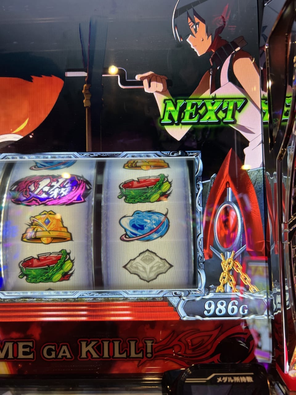 むやみにクソ台とか言いたくないけど、これは擁護できんわ…。ランクアップしないCZ、先ブルしてるのに仕事しないレア役、ほぼ駆け抜け数十枚で終わるAT。at後は100ゲームまで回したほうがいいんだろうけど、仮に引き戻しても大半がしょぼ出玉で終わることを考えると嫌になって、数千円浮いてたのもあって即辞めしてきました。とにかく遅い、増えない、そして面白くない!継続ゲーム通した報酬がアイコンひとつとかなめてんのかと。ただ必殺目は気持ちよかったです。