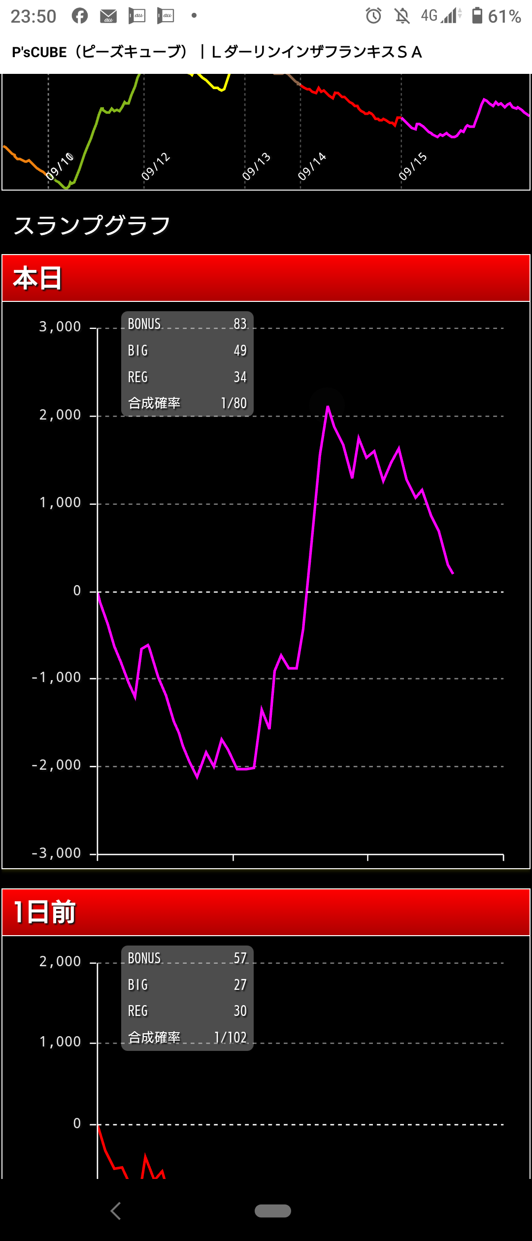 リセ確70G捨てがあったからスマホ見ながらスライド打ちして、40Gくらい回したら非高確集中のハズレから高確入って逆押しが揃ってCZ入ったら青スタートの緑当選でBB