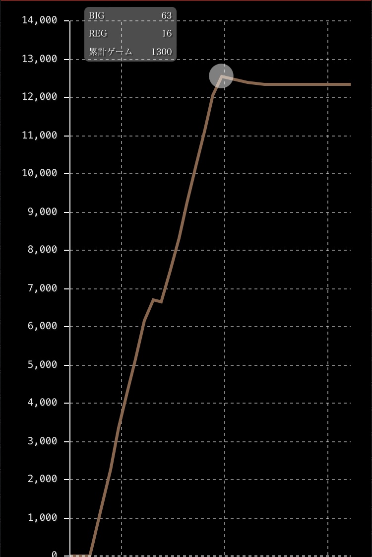 ドキドキ以上(またはドキドキ以上と思われる連チャン)が、深いゲーム数での当りを最後に終わる事が頻発します。
