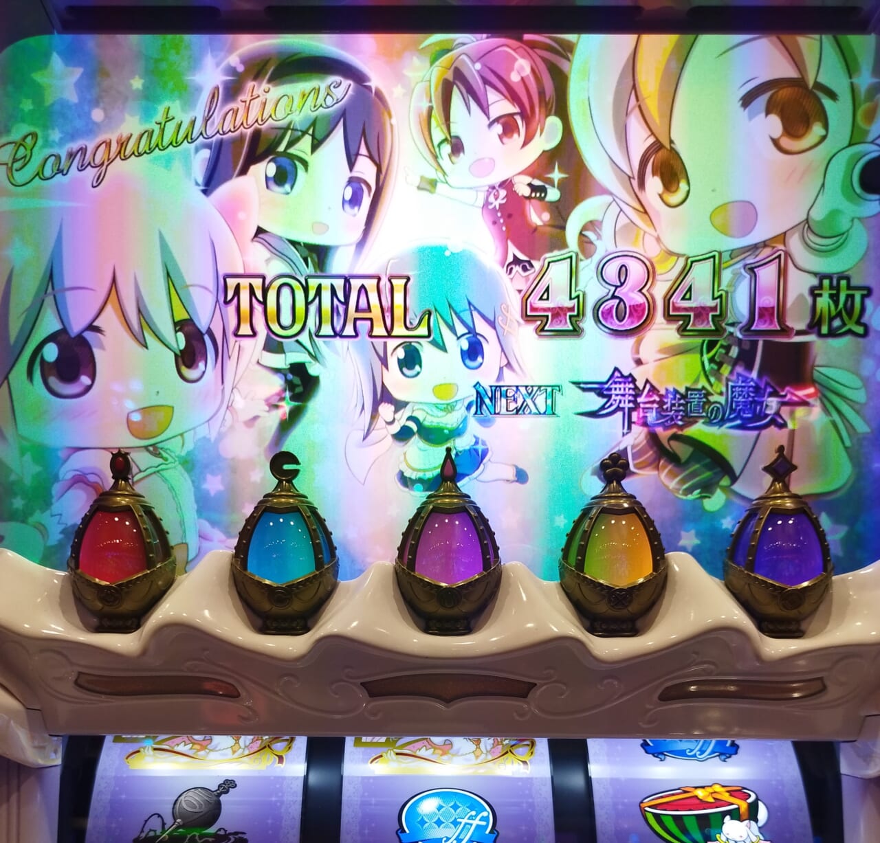 ちなみに、この機種は残り500枚くらいでまどかが出てきて完走画面に移行するのでジリ貧状態ならおいしい ただ残400枚で移行したこともあるので残500枚とは限らないかも