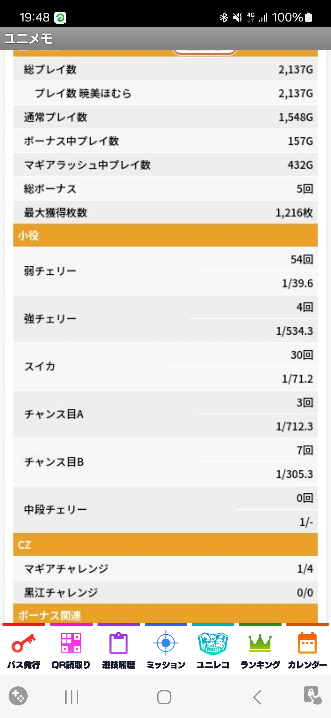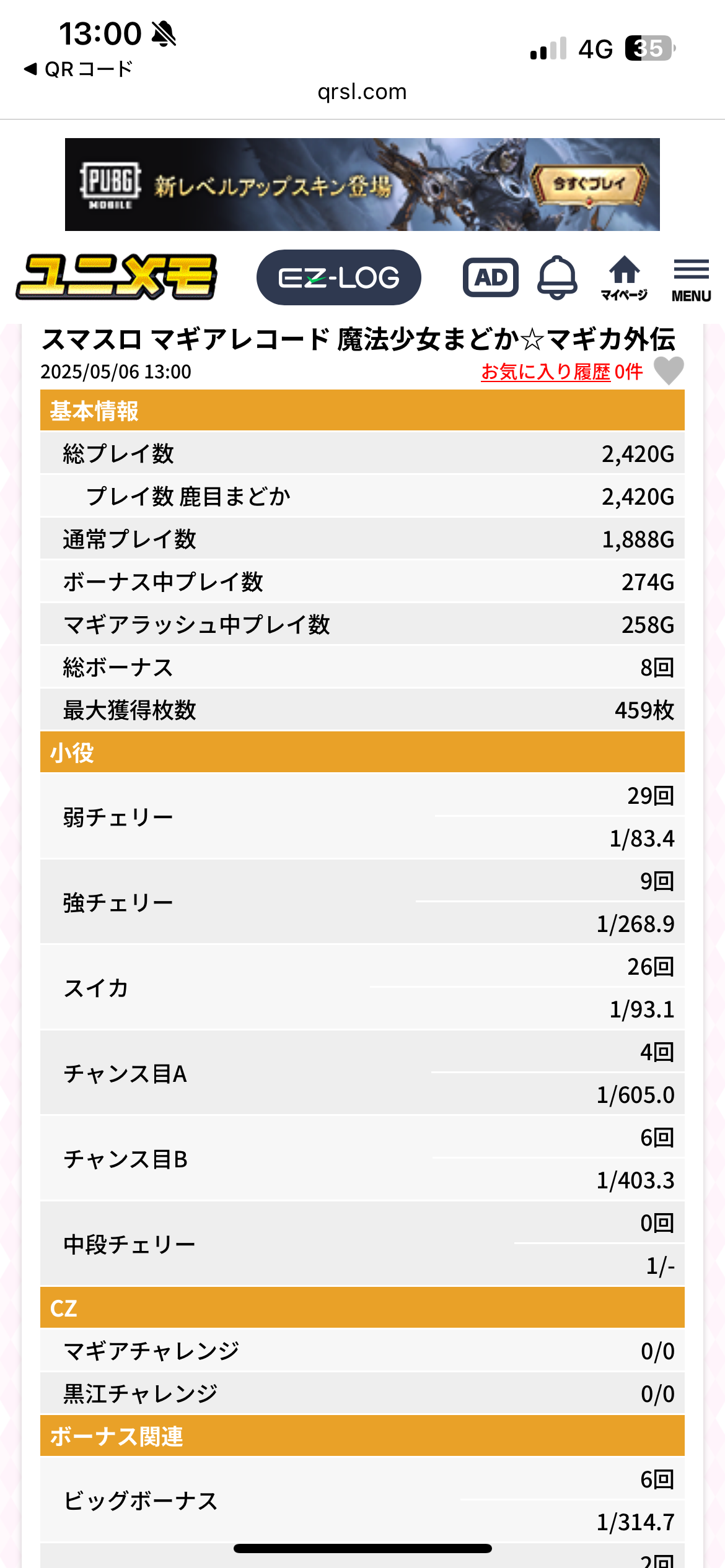 当たってもビッグ4回おきに5Gが1回とかだったし、マギチャレ?だかはほぼ当たらない。