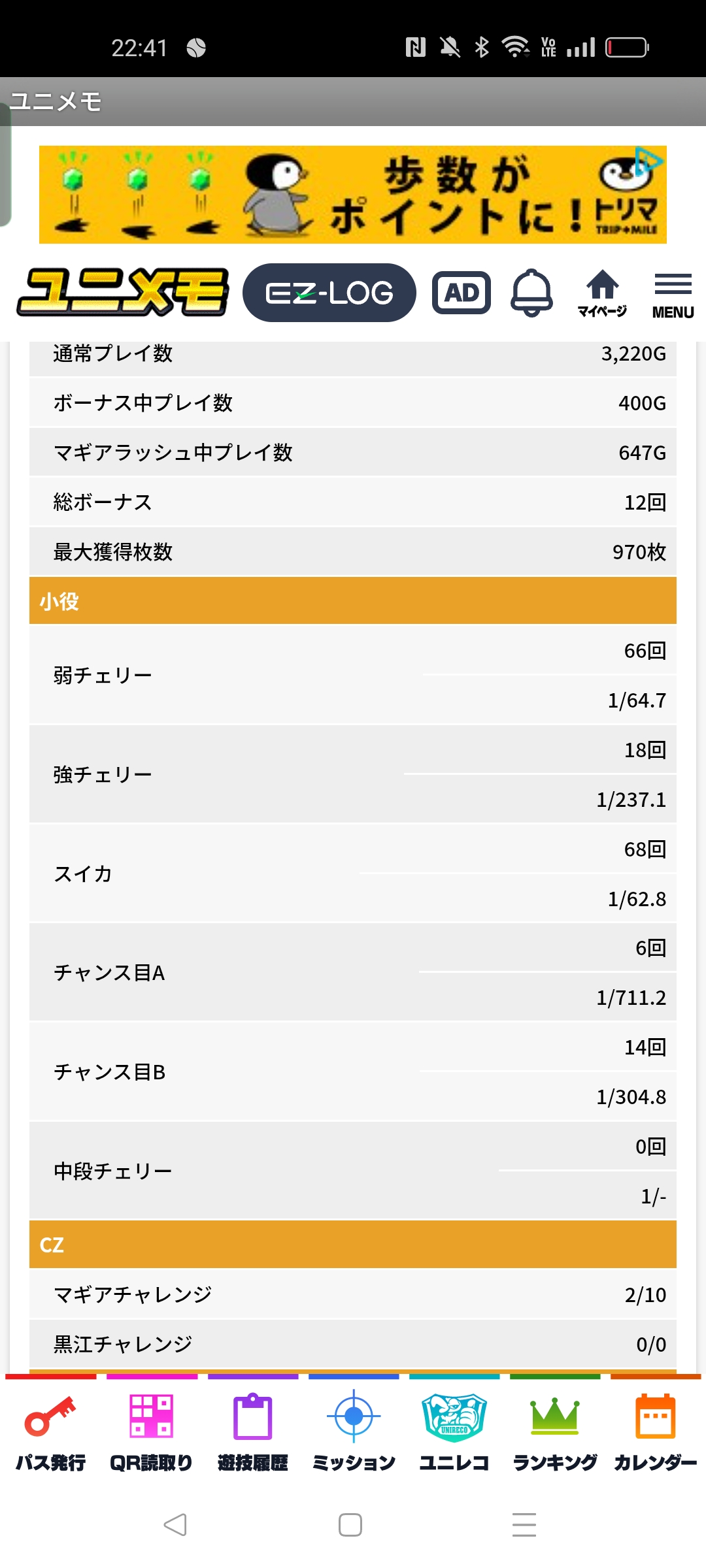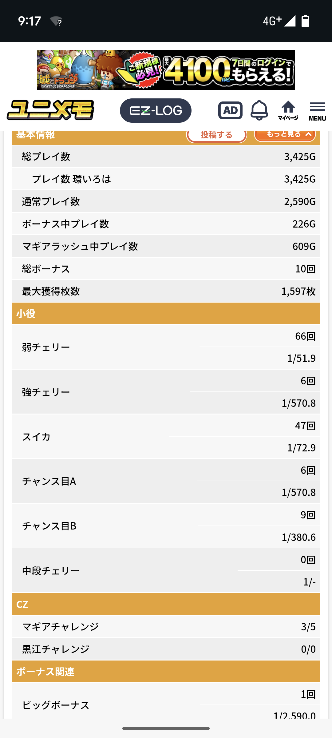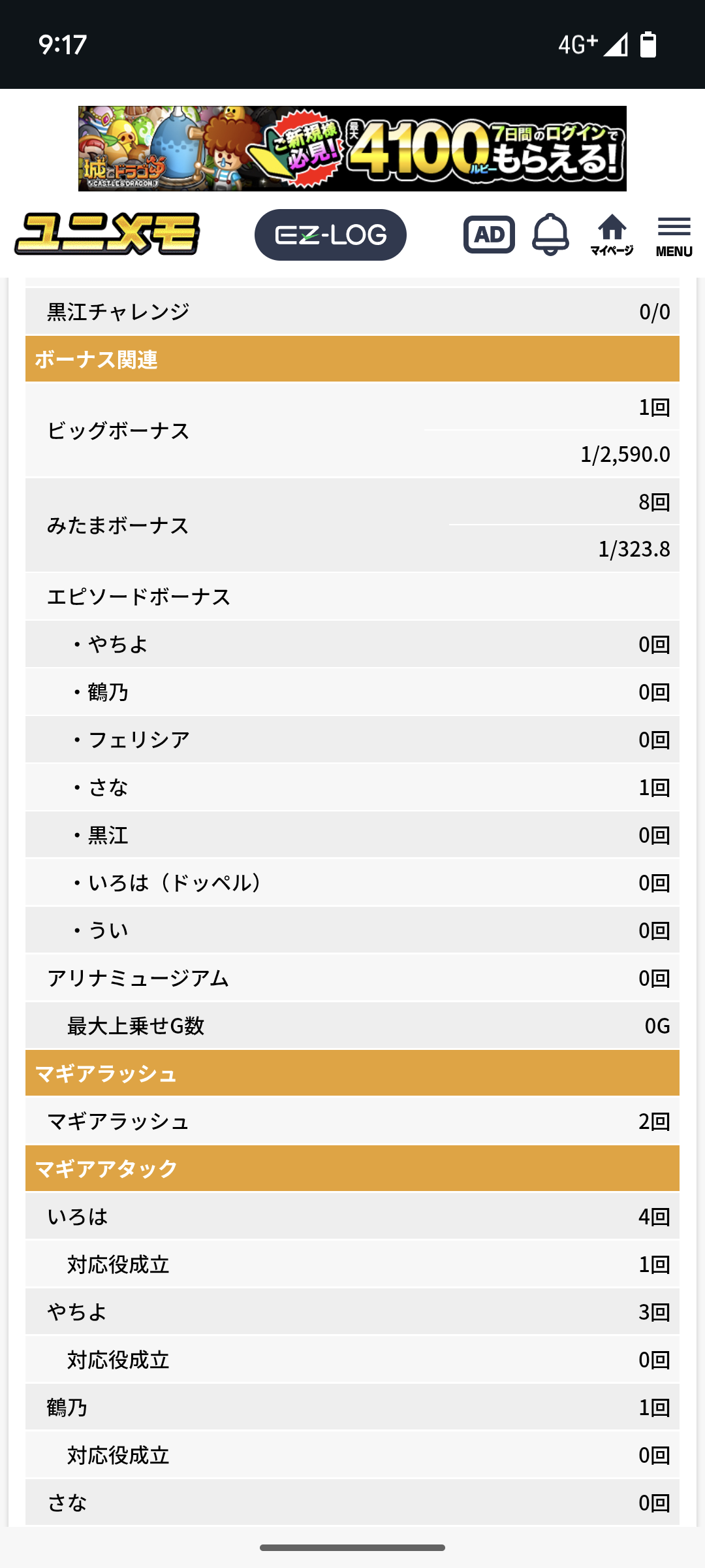 ゲーム数4000弱でマギアチャレンジ突入回数3回という恐ろしい引きをしてます