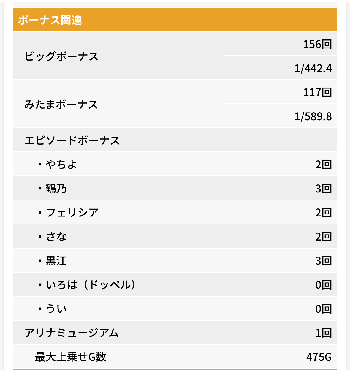 通算結果見たら、ビッグ774回、みたま507回で6:4でした