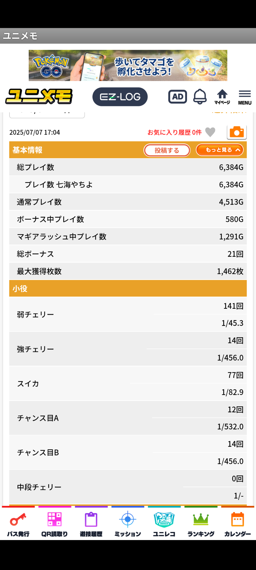 予想くらいの7回でしたか。私よりかなりマシな4ですね。私は8回目のBBでAT当選してエピボ入らず、その後も数回ボナスルーしましたが穢れ解放せず18時過ぎヤメ約3000枚負けを経験してます。後任者が閉店まで回したようで閉店時さらにマイナス約1000枚でマイナス4000枚オーバーの4も存在してます