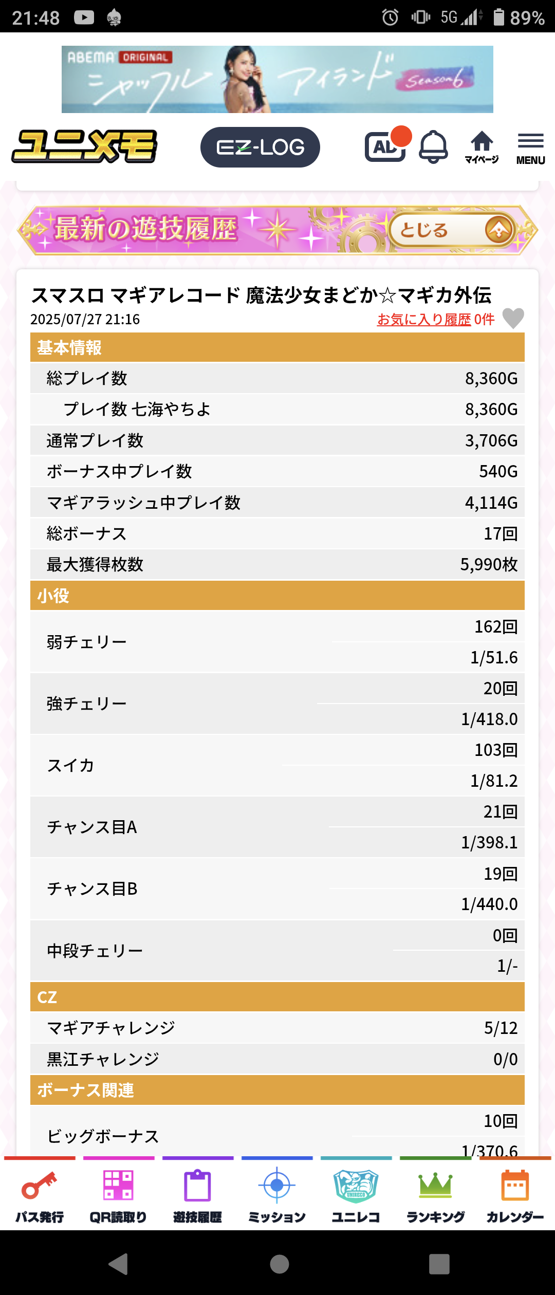 負けたことでイライラしたとかではなく、やれないとやっぱ高設定でも厳しいのがスマスロなんだなと実感した1日でした。