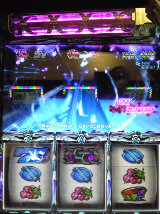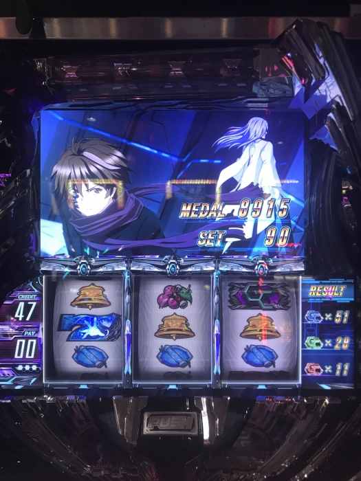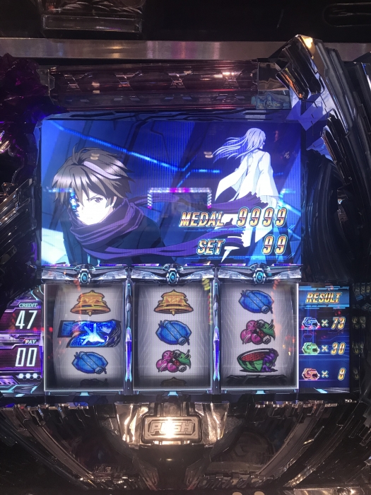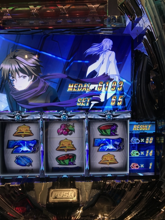 とりあえず初打ち、目玉?である歌のステップアップ演出は思っていたよりも自然にスロットに溶け込んでいて手を止めて音楽を聴いてしまうこともしばしば、そのあたりはEGOISTというアーティストをうまく使えてると思う。
