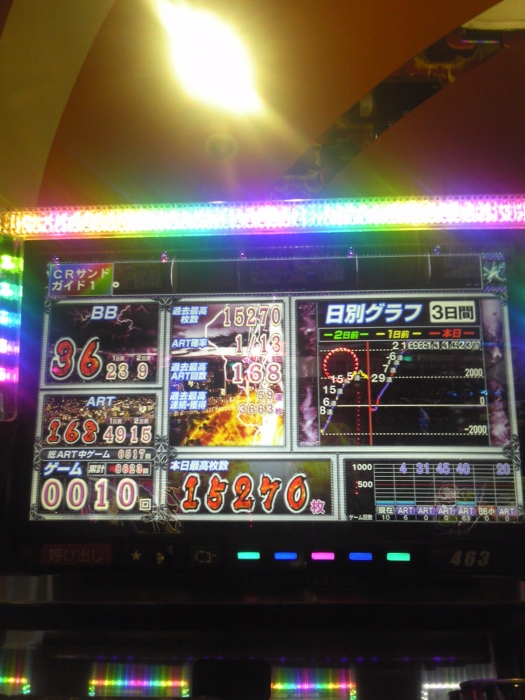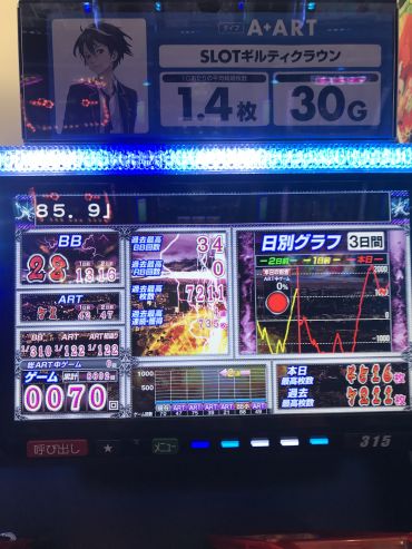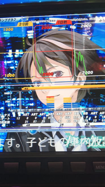 上っぽいグラフの台を打ちました。art後100Gぐらいから打ち始め600GでCZ3回と強レア役来れば来る感じでした。