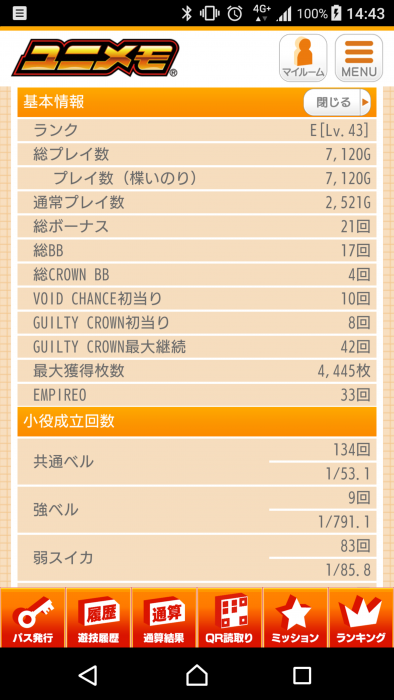 最終的に1200g回して共通ベルが1/42.9だったので高設定だったかもです。閉店間際じゃなければもっと打ちたかった