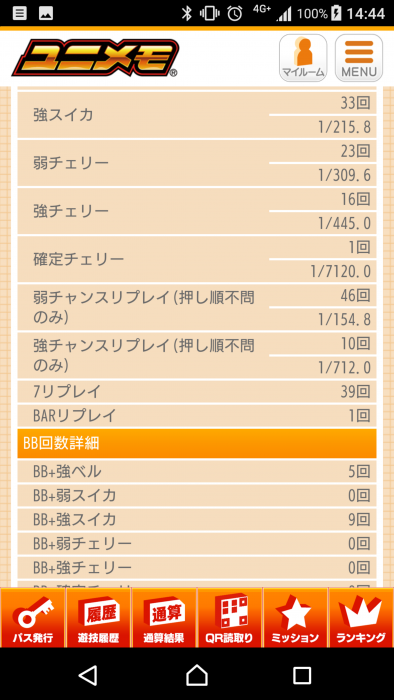 ボナは枚数の確保って感じでビック中のベルハズレやクラウンビック中赤7揃いは期待あまり出来ないイメージです。
