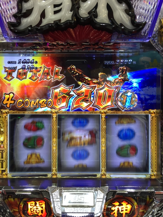 閉店前の10時にどんなもんか座ってみたら、なんだかよくわからないうちにART。上乗せ中に中チェ引きなんだかんだ事故った感があり900Gスタート。苦笑いが止まらず消化するも閉店の45分間で600G消化するのがやっと…。残り300G+闘神への道を残し1300枚閉店。純増1.8枚はコインがなかなか貯まらない…全部取りきれてたら何枚出たのか気になりましたが、やはりバイオもそうですが最近の台は事故らないと意味がないのだと痛感しました。