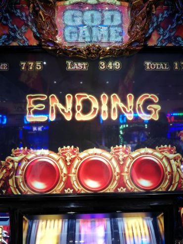 初めて打ちましたが、1000ゲーム超えてハーデスの槍が出現してGODが揃いました。全てのジャッジメントを残り100ゲーム残し閉店を迎えました(><)