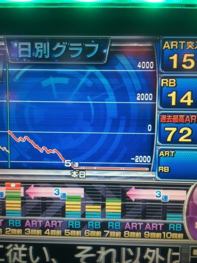 5台設置で5日間連続3000枚以上吸い込んでる台が3台、他たまにトントンくらいのグラフ