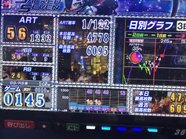 朝一からボーナスが軽くARTも軽く、4回目のARTで上手くボーナスや白7揃いが絡み、89%継続をとり、頑張りました。高設定でも事故らせないと伸びないと打ってて分かりました。